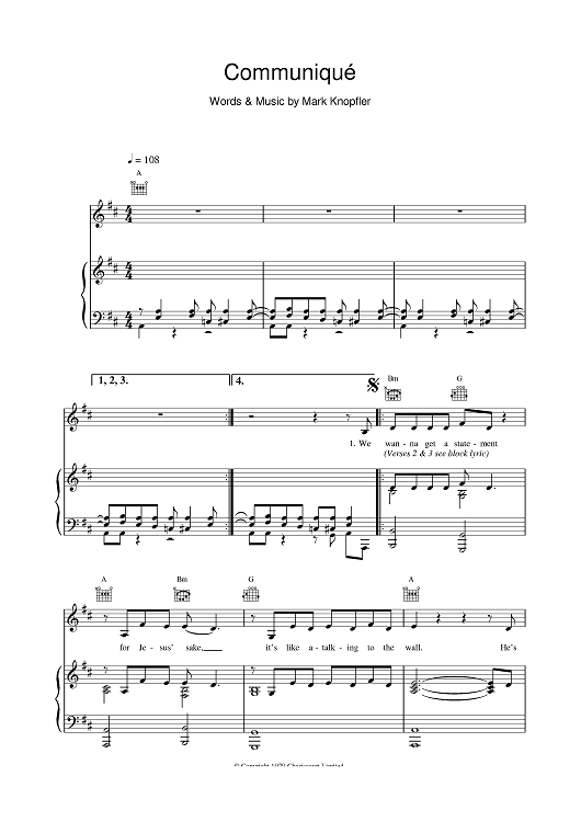 Digital Sheet Music for Communique by Dire Straits scored for Piano/Vocal/Chords; id:376333