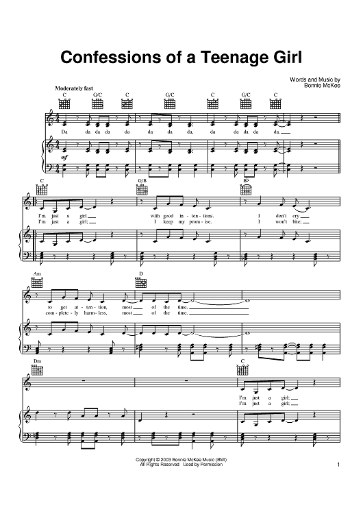 Digital Sheet Music for Confessions Of A Teenage Girl by Bonnie McKee scored for Piano/Vocal/Chords; id:381166