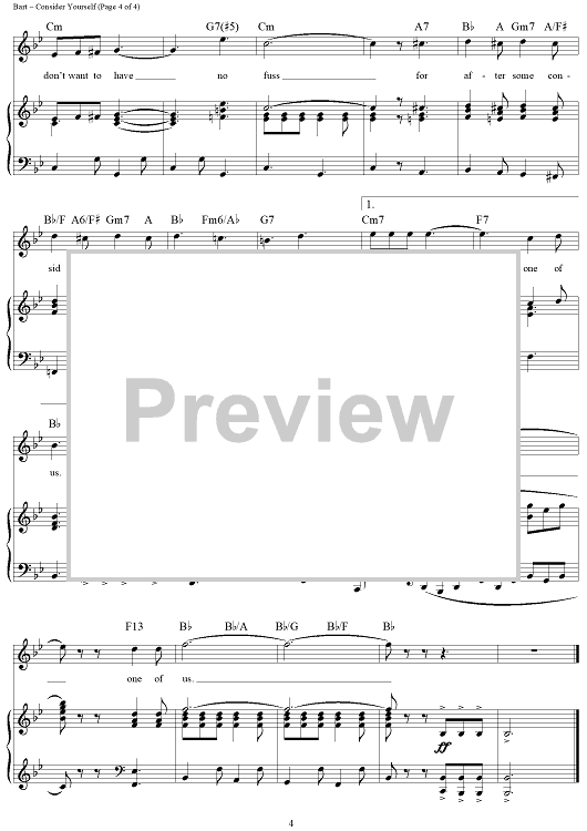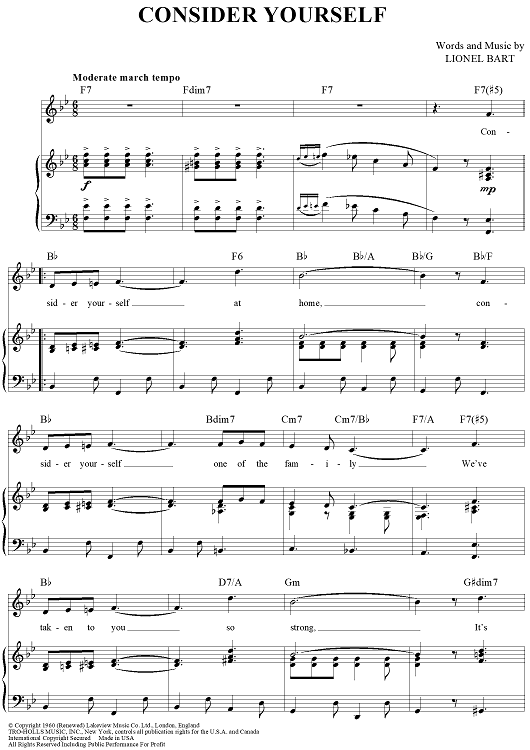 Digital Sheet Music for Consider Yourself by Lionel Bart scored for Piano/Vocal/Chords; id:390865