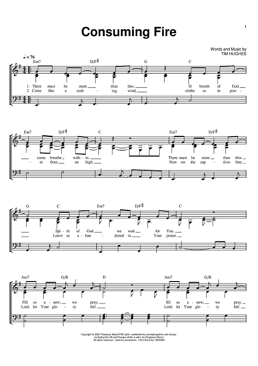 Digital Sheet Music for Consuming Fire by Tim Hughes scored for Piano/Vocal/Chords; id:393793