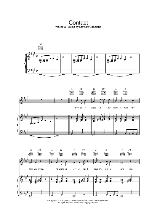 Digital Sheet Music for Contact by The Police, Stewart Copeland scored for Piano/Vocal/Chords; id:390303