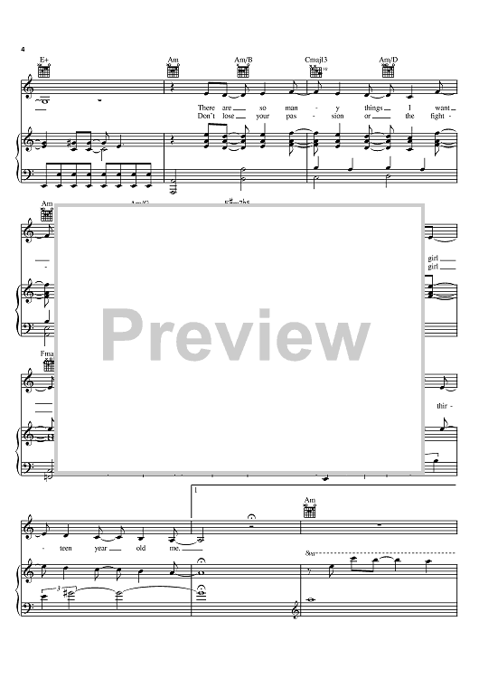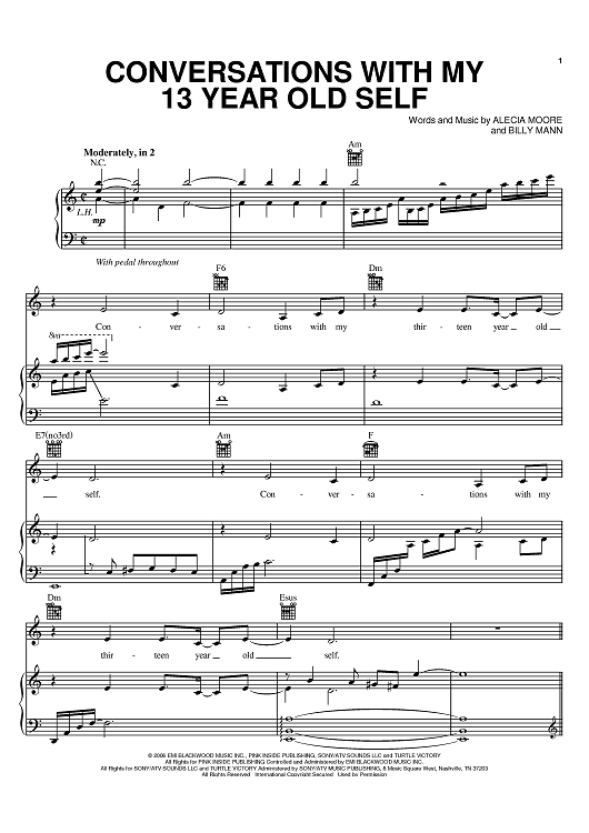 "Conversations With My 13 Year Old Self" Sheet Music by P!nk