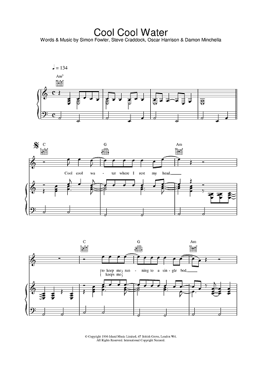 Digital Sheet Music for Cool Cool Water by Ocean Colour Scene scored for Piano/Vocal/Chords; id:376401