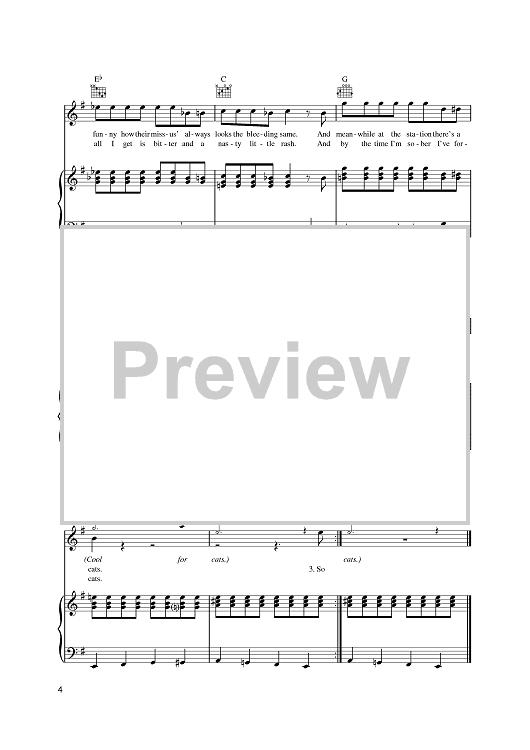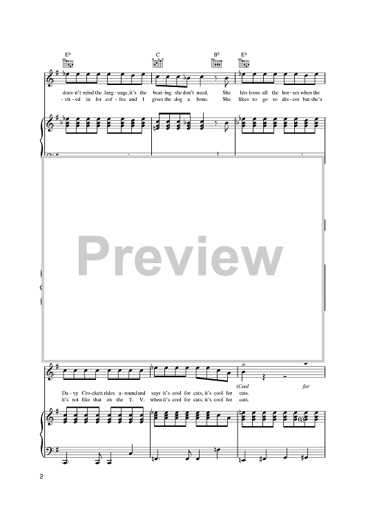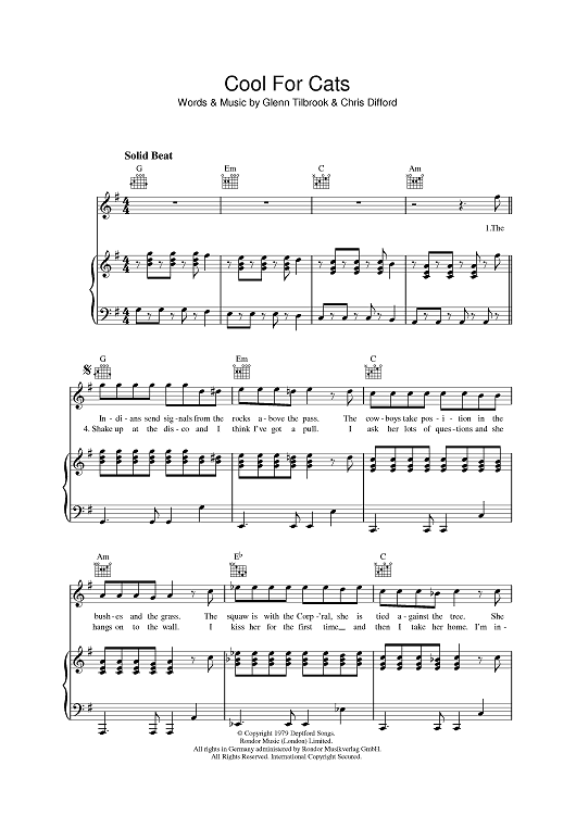 Digital Sheet Music for Cool For Cats by Chris Difford, Squeeze, Glenn Tilbrook scored for Piano/Vocal/Chords; id:398833