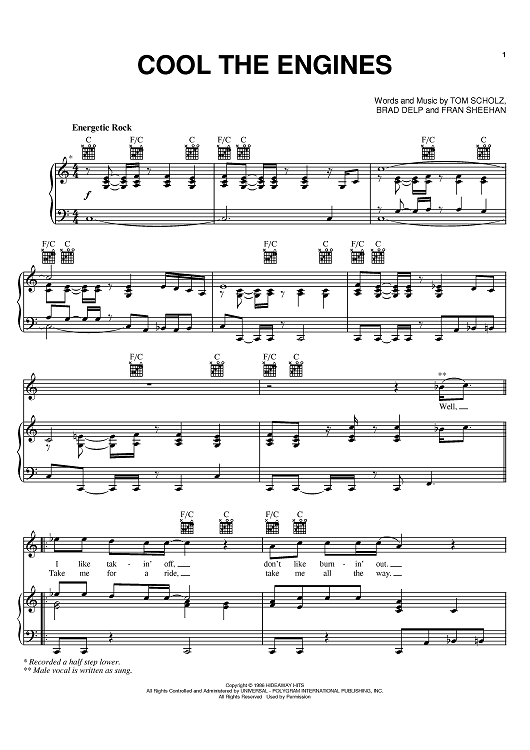 Digital Sheet Music for Cool The Engines by Boston, Tom Scholz, Brad Delp, Fran Sheehan scored for Piano/Vocal/Chords; id:402817