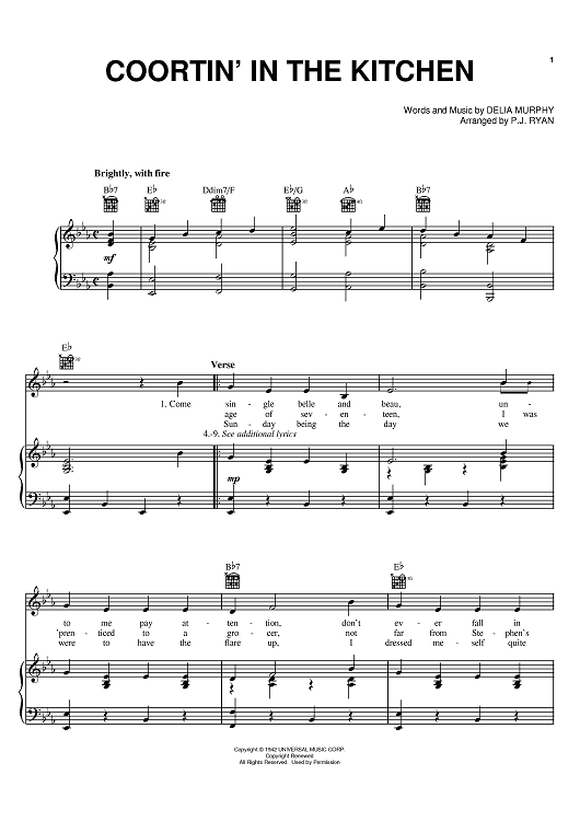 Digital Sheet Music for Coortin' In The Kitchen by Delia Murphy, P.J. Ryan scored for Piano/Vocal/Chords; id:393723