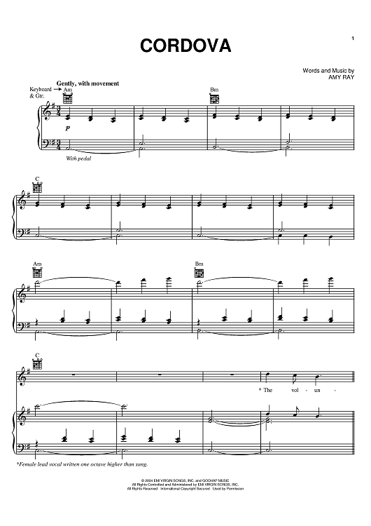 Digital Sheet Music for Cordova by Indigo Girls, Amy Ray scored for Piano/Vocal/Chords; id:384350