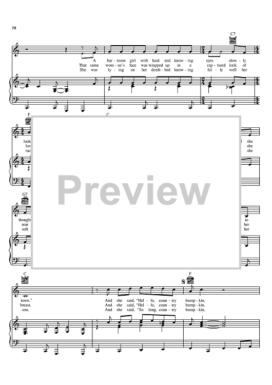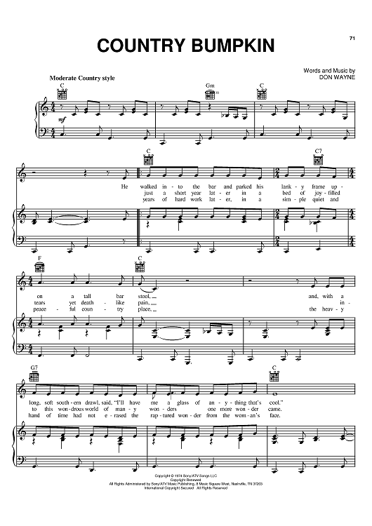 Digital Sheet Music for Country Bumpkin by Hank Thompson, Don Johnson, Cal Smith scored for Piano/Vocal/Chords; id:384583