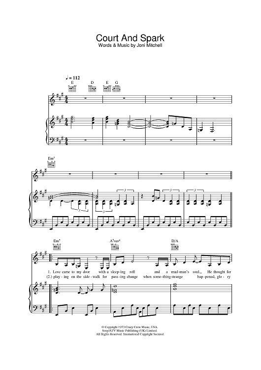 Digital Sheet Music for Court And Spark by Joni Mitchell scored for Piano/Vocal/Chords; id:384035