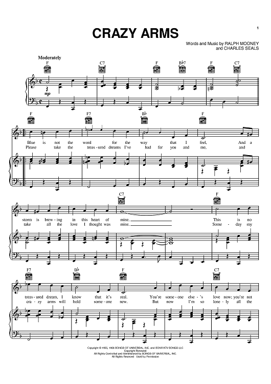 Digital Sheet Music for Crazy Arms by Ralph Mooney, Charles Seals, Willie Nelson scored for Piano/Vocal/Chords; id:384585
