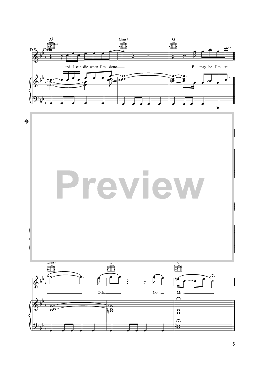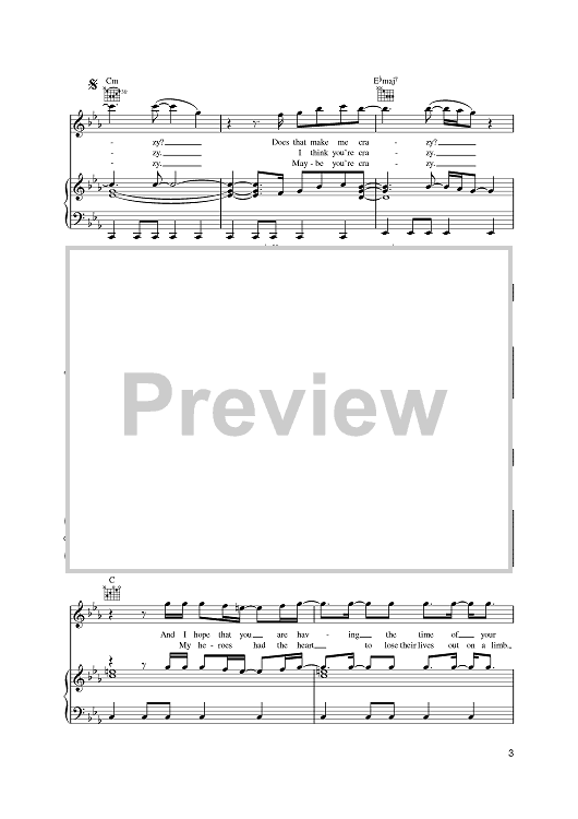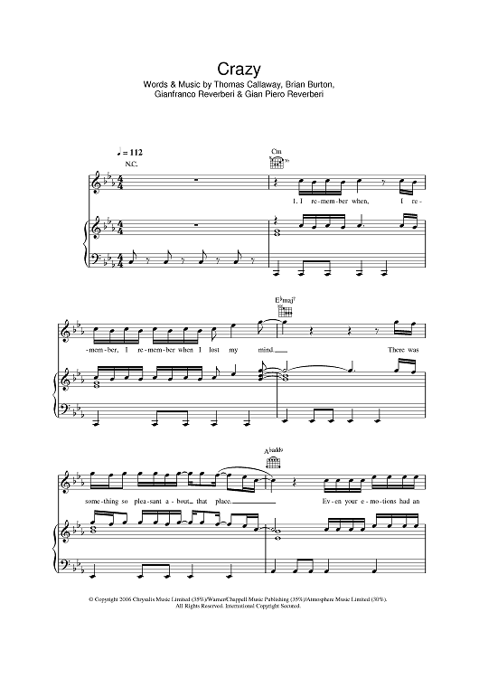 Digital Sheet Music for Crazy by Gnarls Barkley, Gianfranco Reverberi, Gian Piero Reverberi, Danger Mouse, CeeLo Green scored for Piano/Vocal/Chords; id:390008