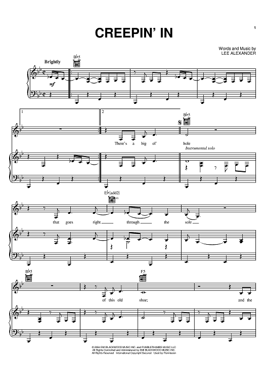 Digital Sheet Music for Creepin' In by Norah Jones, Lee Alexander scored for Piano/Vocal/Chords; id:374601