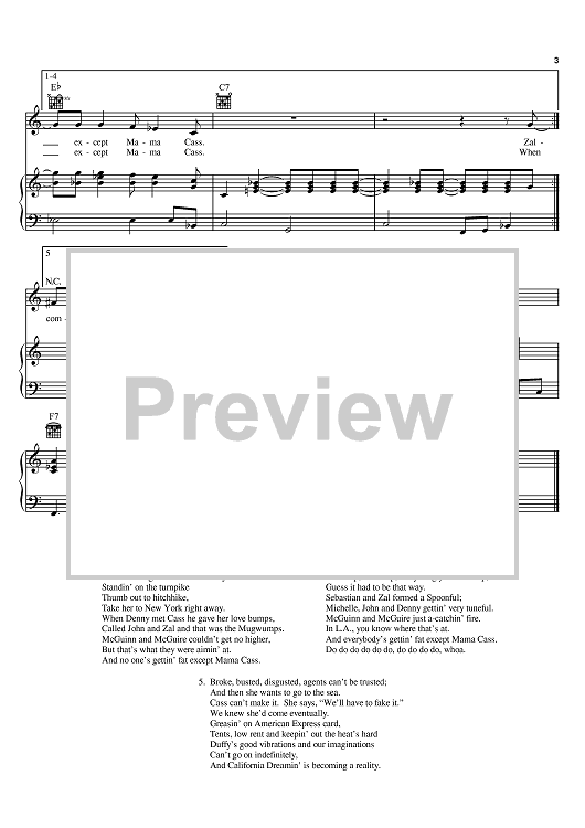 Digital Sheet Music for Creeque Alley by The Mamas and The Papas, Michelle Phillips, John Phillips scored for Piano/Vocal/Chords; id:382717