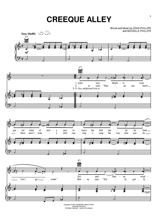 "Creeque Alley" Sheet Music by The Mamas and The Papas