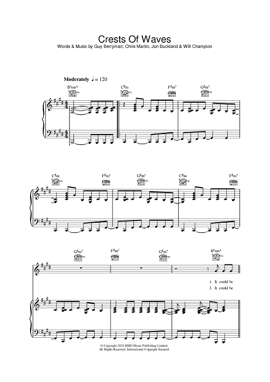 Digital Sheet Music for Crests Of Waves by Chris Martin, Coldplay, Jonny Buckland, Guy Berryman scored for Piano/Vocal/Chords; id:397003