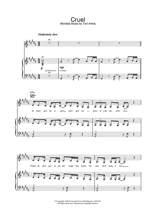 Digital Sheet Music for Cruel by Tori Amos scored for Piano/Vocal/Chords; id:376710