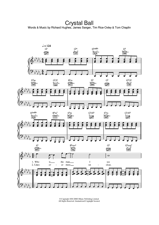 Digital Sheet Music for Crystal Ball by Keane, Tim Rice-Oxley, Tom Chaplin, Richard David Hughes, James Sanger scored for Piano/Vocal/Chords; id:391182