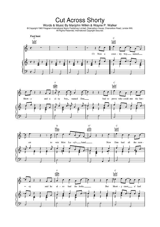 Digital Sheet Music for Cut Across, Shorty by Marijohn Wilkin, Eddie Cochran, Wayne P. Walker scored for Piano/Vocal/Chords; id:379719