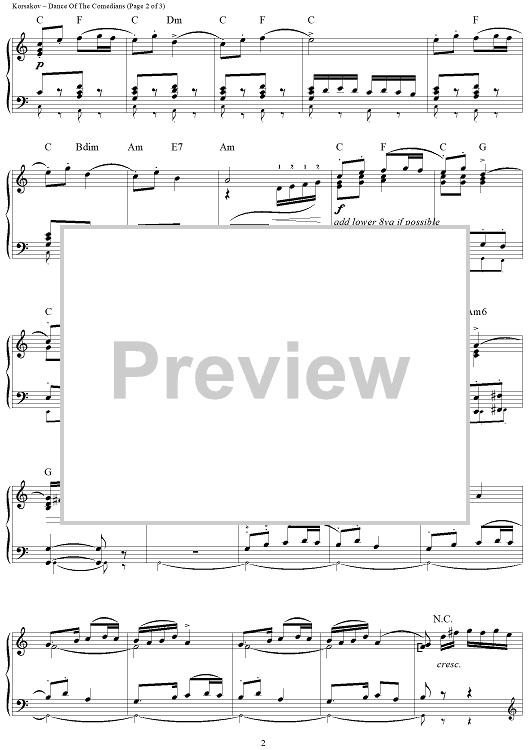 Digital Sheet Music for Dance Of The Comedians by Nikolai Rimsky-Korsakov scored for Easy Piano/Chords; id:437447