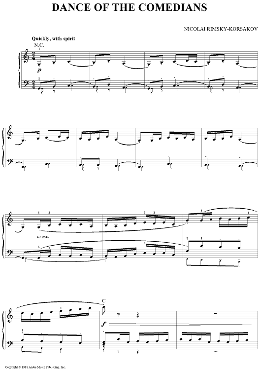 "Dance Of The Comedians" Sheet Music by Nikolai Rimsky-Korsakov
