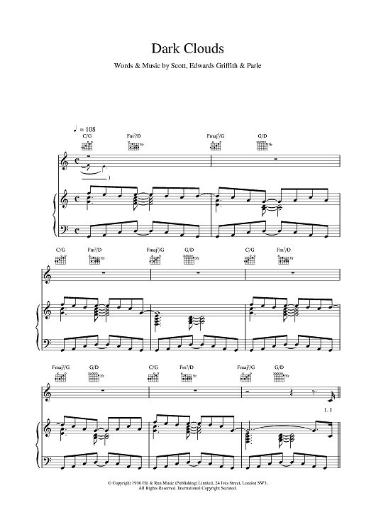 Digital Sheet Music for Dark Clouds by Space scored for Piano/Vocal/Chords; id:376298