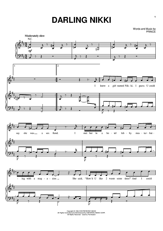Digital Sheet Music for Darling Nikki by Prince scored for Piano/Vocal/Chords; id:398340