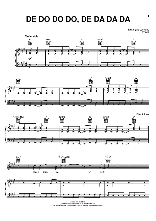 Digital Sheet Music for De Do Do Do, De Da Da Da by Sting, The Police scored for Piano/Vocal/Chords; id:395421