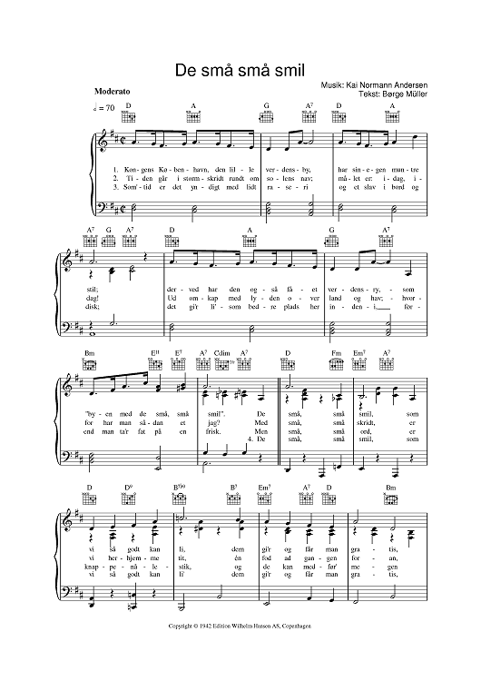 Digital Sheet Music for De Små Små Smil by Kai Normann Andersen, Borge Muller scored for Piano/Vocal/Chords; id:388336