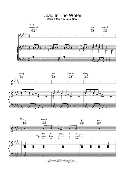 Digital Sheet Music for Dead In The Water by David Gray scored for Piano/Vocal/Chords; id:377765