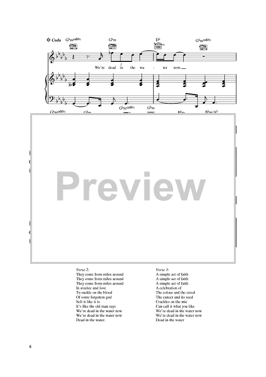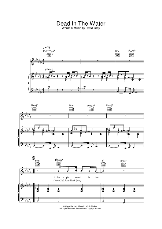 Digital Sheet Music for Dead In The Water by David Gray scored for Piano/Vocal/Chords; id:388703