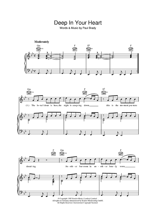 Digital Sheet Music for Deep In Your Heart by Paul Brady scored for Piano/Vocal/Chords; id:398702