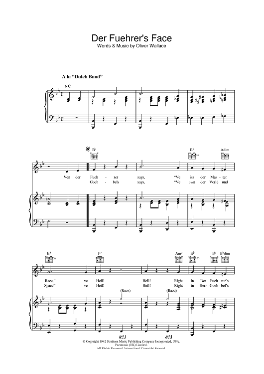 Digital Sheet Music for Der Fuehrer's Face by Oliver Wallace scored for Piano/Vocal/Chords; id:392902