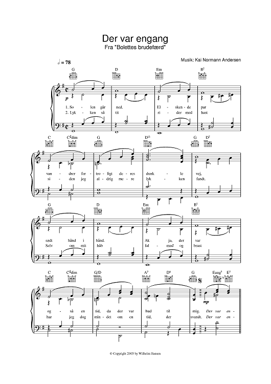 Digital Sheet Music for Der Var Engang by Kai Normann Andersen scored for Piano/Vocal/Chords; id:388339