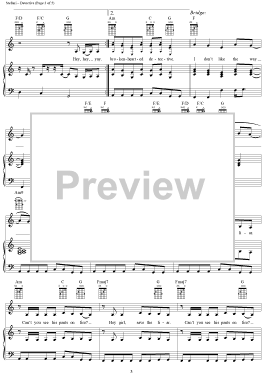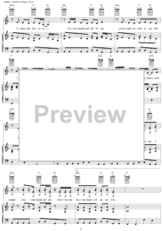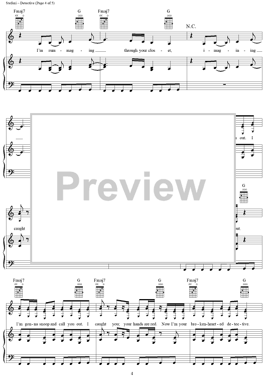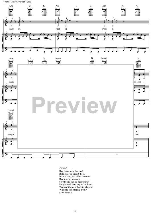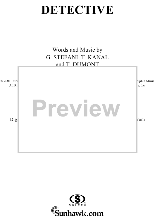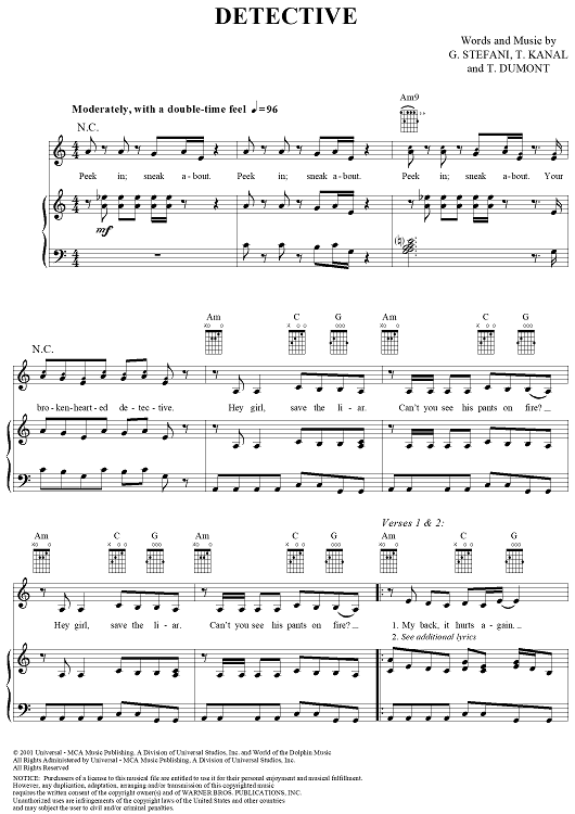 Digital Sheet Music for Detective by No Doubt, Tom Dumont, Tony Kanal, Gwen Stefani scored for Piano/Vocal/Chords; id:293577