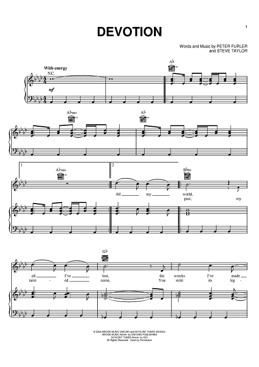 Digital Sheet Music for Devotion by Peter Furler, Steve Taylor, Newsboys scored for Piano/Vocal/Chords; id:382030