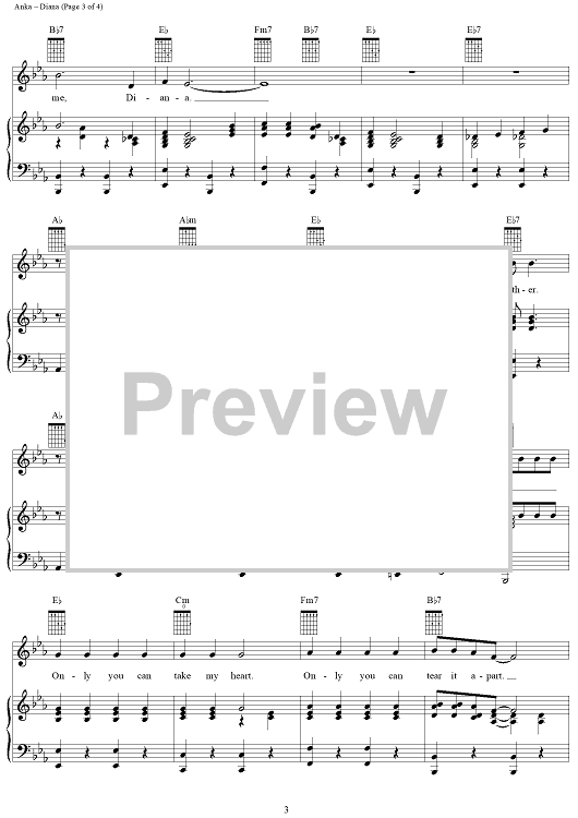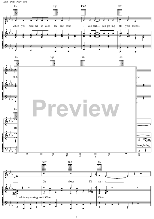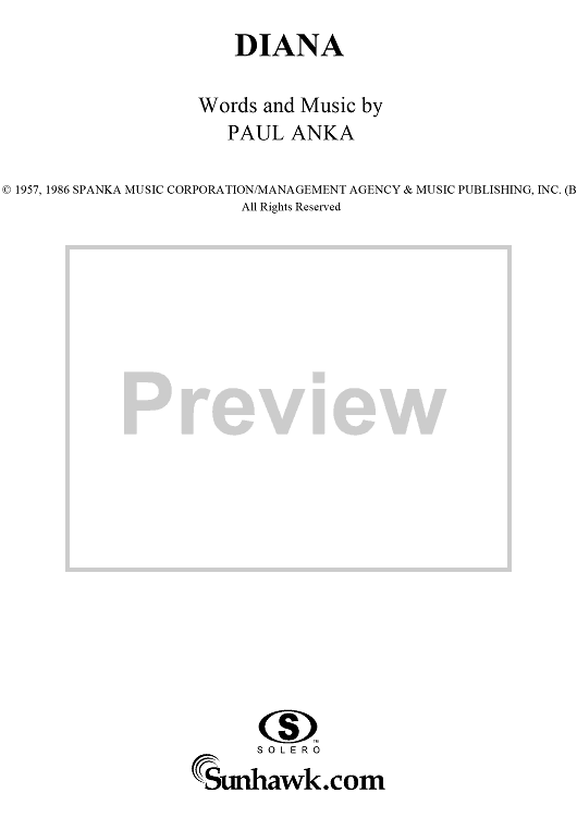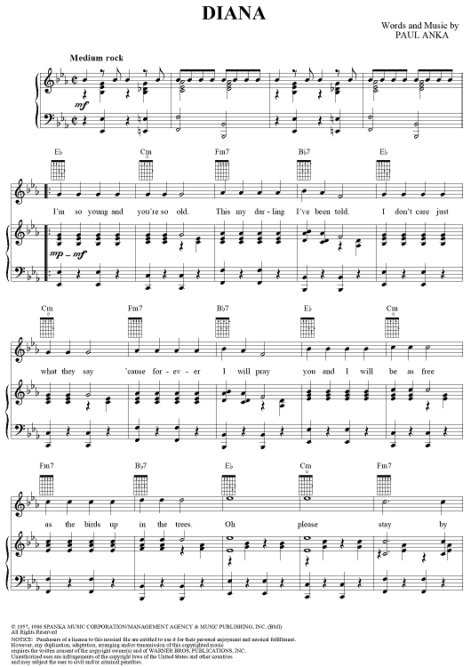 Digital Sheet Music for Diana by Paul Anka scored for Piano/Vocal/Chords; id:113264