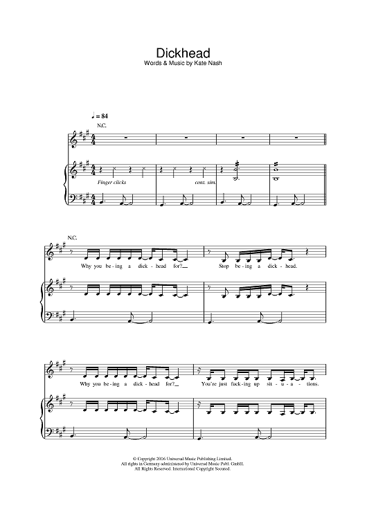 Digital Sheet Music for Dickhead by Kate Nash scored for Piano/Vocal/Chords; id:401920