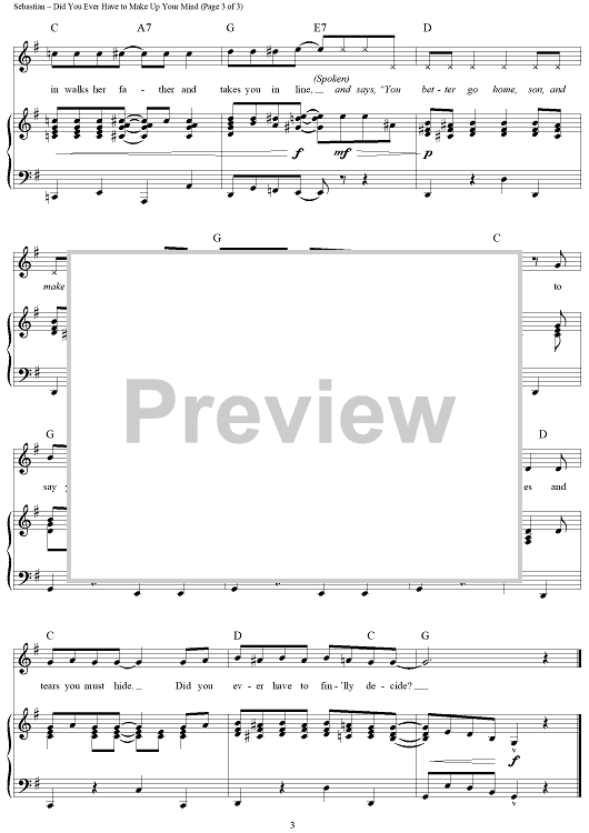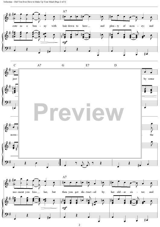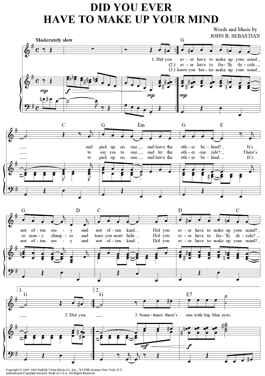 Digital Sheet Music for Did You Ever Have to Make Up Your Mind by John Sebastian, The Lovin' Spoonful scored for Piano/Vocal/Chords; id:365309