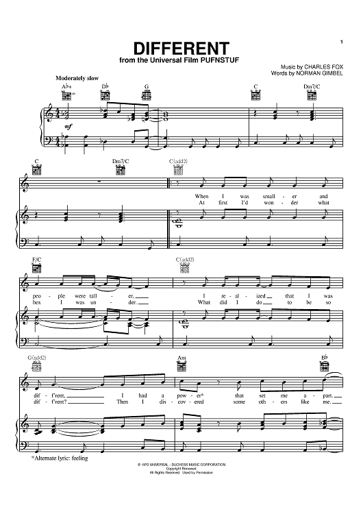 Digital Sheet Music for Different by Norman Gimbel, Charles Fox scored for Piano/Vocal/Chords; id:374899