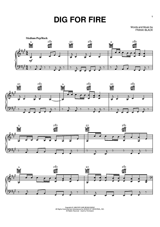 Digital Sheet Music for Dig For Fire by Frank Black, Pixies scored for Piano/Vocal/Chords; id:396719