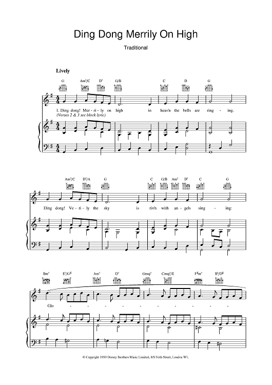 Digital Sheet Music for Ding Dong Merrily On High by scored for Piano/Vocal/Chords; id:380231