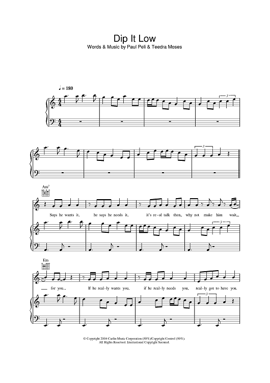 Digital Sheet Music for Dip It Low by Christina Milian, Teedra Moses, Paul Peli scored for Piano/Vocal/Chords; id:389971