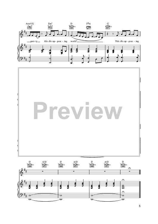 Digital Sheet Music for Disappearing World by David Gray scored for Piano/Vocal/Chords; id:388708