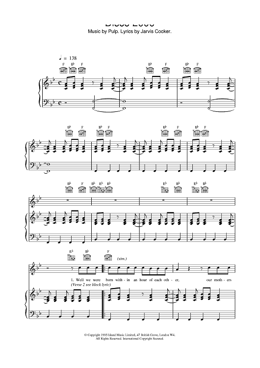 Digital Sheet Music for Disco 2000 by Pulp scored for Piano/Vocal/Chords; id:379029