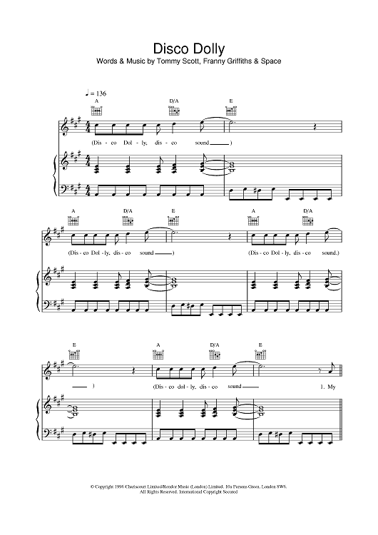 Digital Sheet Music for Disco Dolly by Franny Griffiths, Tommy Scott, Space scored for Piano/Vocal/Chords; id:379902