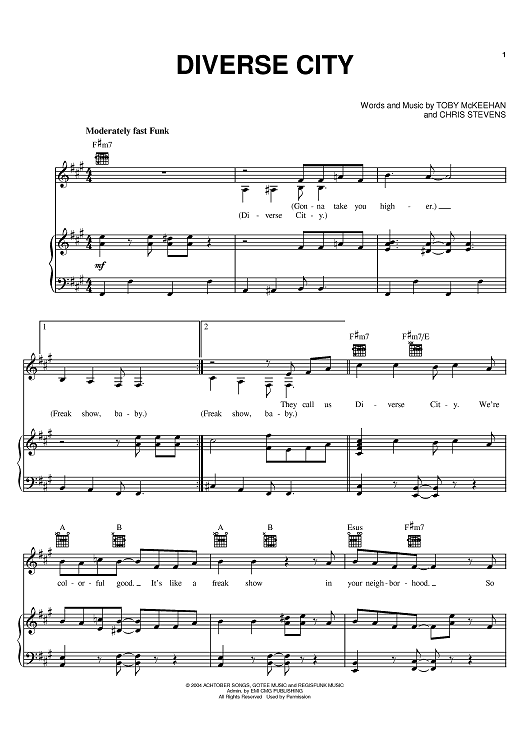 Digital Sheet Music for Diverse City by tobyMac, Chris Stevens scored for Piano/Vocal/Chords; id:382012