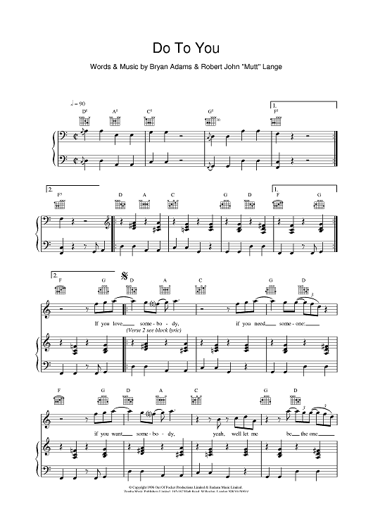 Digital Sheet Music for Do To You by Bryan Adams, Robert Lange scored for Piano/Vocal/Chords; id:376237