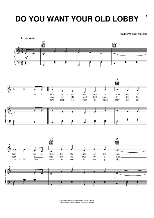 Digital Sheet Music for Do You Want Your Old Lobby by scored for Piano/Vocal/Chords; id:393910