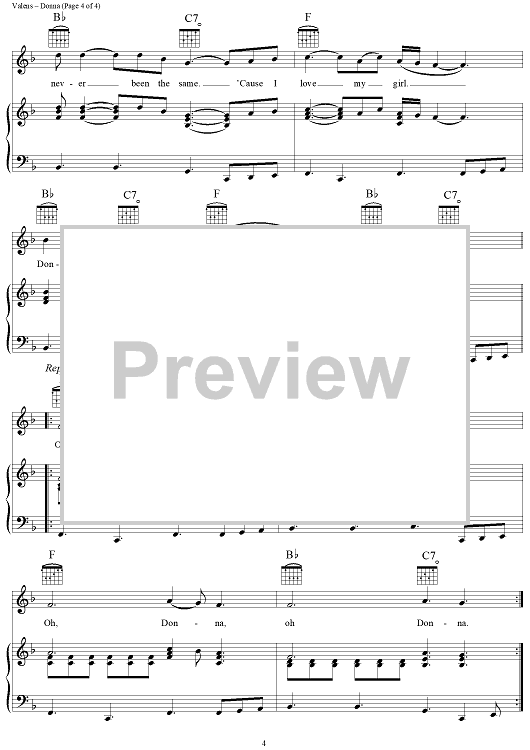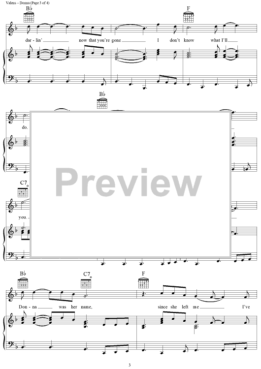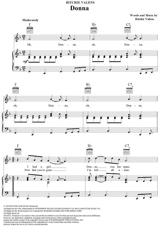 Digital Sheet Music for Donna by Ritchie Valens scored for Piano/Vocal/Chords; id:111057