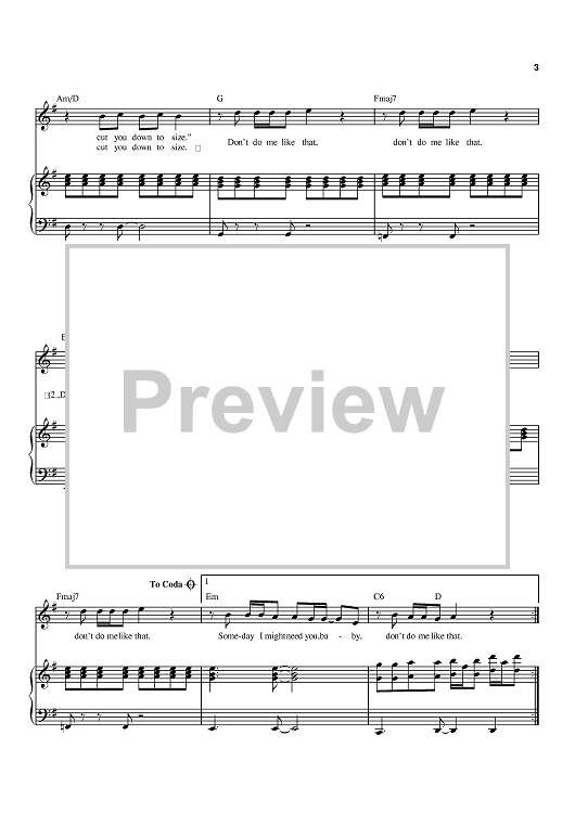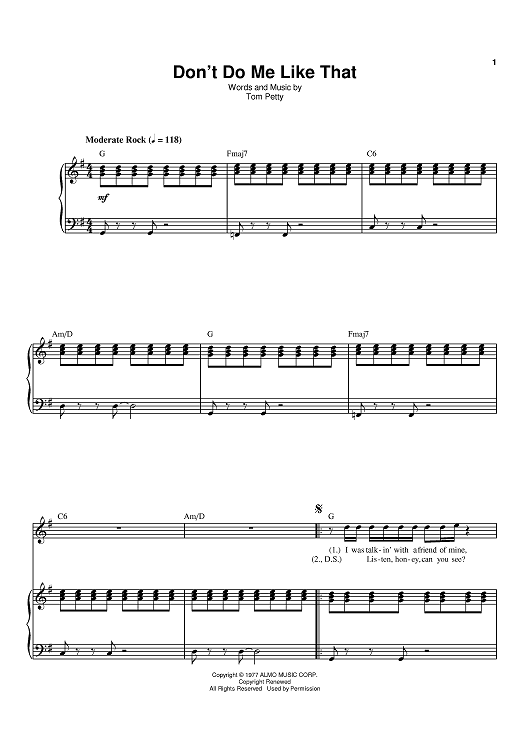Digital Sheet Music for Don't Do Me Like That by Tom Petty scored for Piano/Vocal/Chords; id:398581
